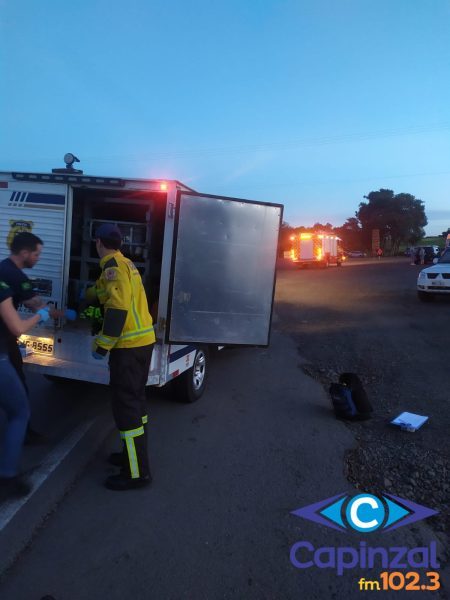 De acordo com os bombeiros, a colisão envolveu um Fiat Toro e uma motocicleta. No carro estavam quatro ocupantes, que não sofreram ferimentos e não precisaram de atendimento.