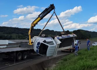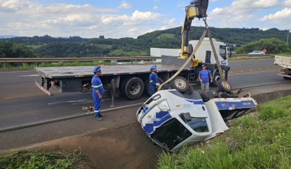 O motorista de um utilitário Hyundai HR, com placas de Capinzal, ficou ferido após um capotamento registrado na tarde desta terça-feira (06), no Contorno Viário do município. A ocorrência foi atendida pelo Corpo de Bombeiros por volta das 16h.
