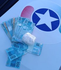 Durante a abordagem, a suspeita apresentou comportamento nervoso, o que motivou uma busca pessoal. Com ela, os policiais localizaram aproximadamente 102 gramas de substância análoga à cocaína, além da quantia de R$ 4.700,00 em dinheiro e três cédulas de R$ 100,00 aparentemente falsas.