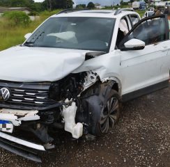 De acordo com o Corpo de Bombeiros Militar, o acidente envolveu um Volkswagen T-Cross, conduzido por um idoso de 79 anos, que não sofreu ferimentos, e um Volkswagen Polo, ocupado por três pessoas. Quando as equipes chegaram ao local, o motorista, de 43 anos, e um passageiro de 11 anos já estavam fora do carro e não apresentavam lesões.