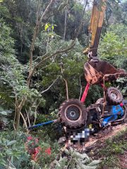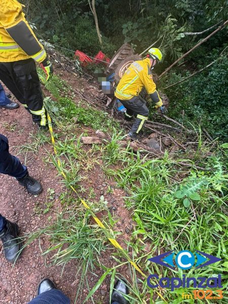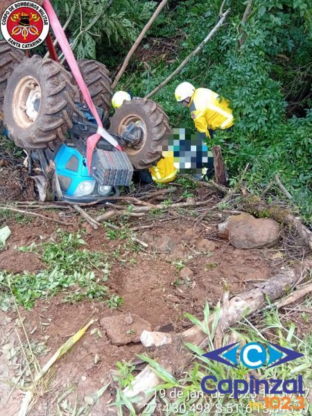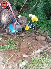 No local, as guarnições confirmaram que se tratava de um capotamento de um trator Landini, que saiu da via e caiu em um barranco. A condutora acabou ficando presa sob o veículo e não resistiu aos ferimentos, indo a óbito ainda no local.