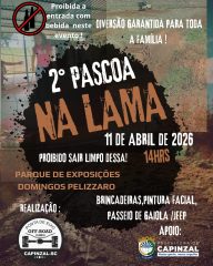 O município de Capinzal recebe no dia 11 de abril a segunda edição da “Páscoa na Lama”, evento voltado à diversão das famílias e especialmente das crianças. A programação acontece a partir das 14h, no Parque de Exposições Domingos Pelizzaro.