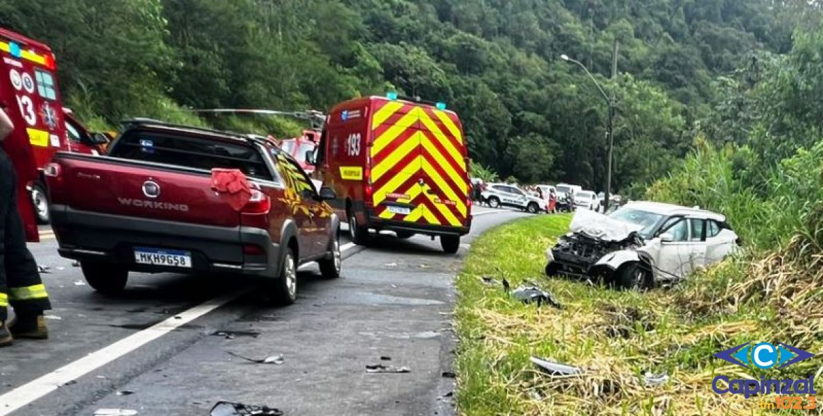 A ocorrência mobilizou equipes do Corpo de Bombeiros, SAMU, Polícia Rodoviária Federal e o helicóptero Arcanjo. As causas do acidente serão apuradas.