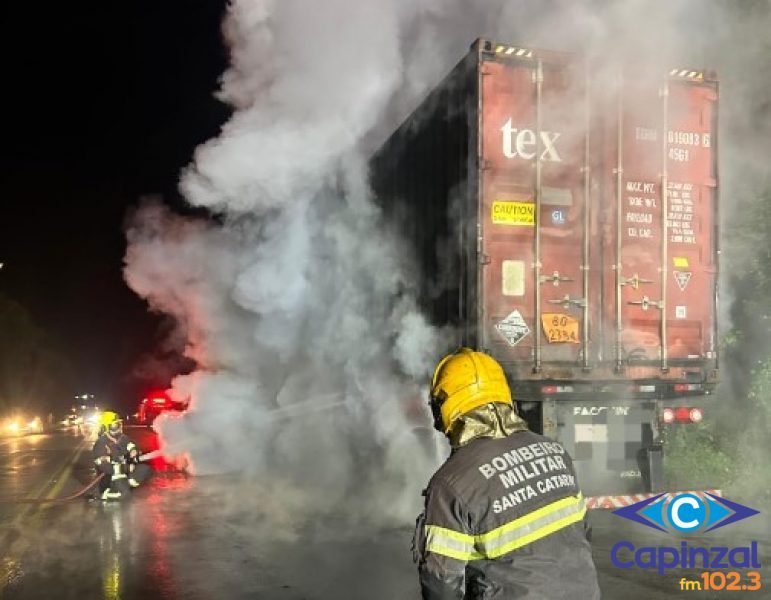 Um princípio de incêndio em uma carreta mobilizou o Corpo de Bombeiros Militar na noite de domingo (28), por volta das 23h10, na BR-282, nas proximidades do Motel Aquarium, em Joaçaba.