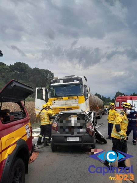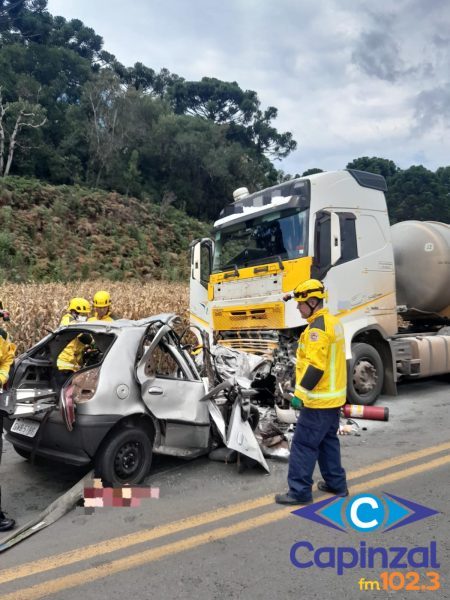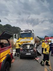 De acordo com o Corpo de Bombeiros, a ocorrência envolveu uma colisão frontal entre uma carreta bitrem e um automóvel Fiat Palio. A carreta, com placas de Curitiba (PR), transportava aproximadamente 57 mil litros de biodiesel. Já o carro de passeio possuía placas de Florianópolis.