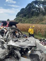 Quatro pessoas morreram após um grave acidente de trânsito registrado na manhã deste sábado (7) na BR-470, nas proximidades da ponte do Rio Marombas, em Brunópolis.