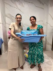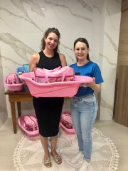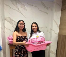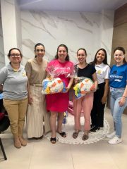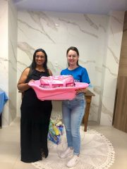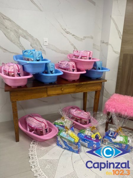 Após a capacitação, foram entregues kits higiênicos aos bebês, contemplando itens essenciais para os primeiros meses de vida.