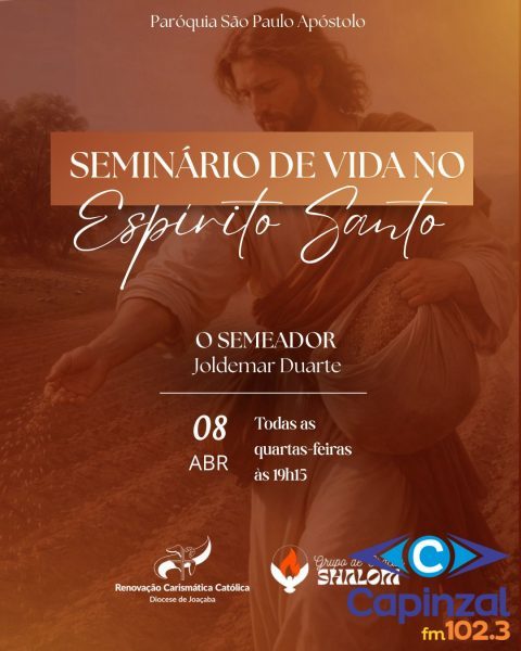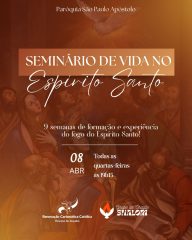 A Renovação Carismática Católica (RCC), por meio do Grupo de Oração Shalom da Paróquia São Paulo Apóstolo, inicia nesta quarta-feira, dia 8 de abril, o tradicional Seminário de Vida no Espírito Santo. A proposta é proporcionar aos participantes uma experiência de fé baseada no querigma — o primeiro anúncio do Evangelho — convidando os fiéis a viverem um encontro pessoal com Deus.