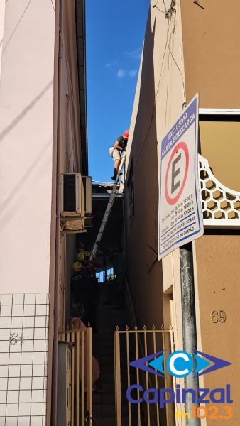 O Corpo de Bombeiros foi acionado às 16h56 desta sexta-feira para atender uma ocorrência na Avenida XV de Novembro, no Centro de Capinzal.
