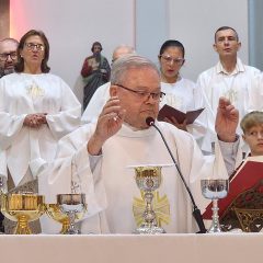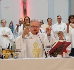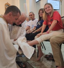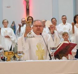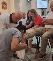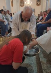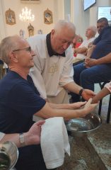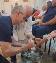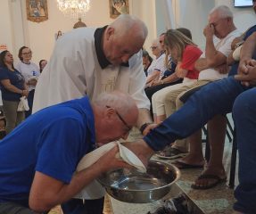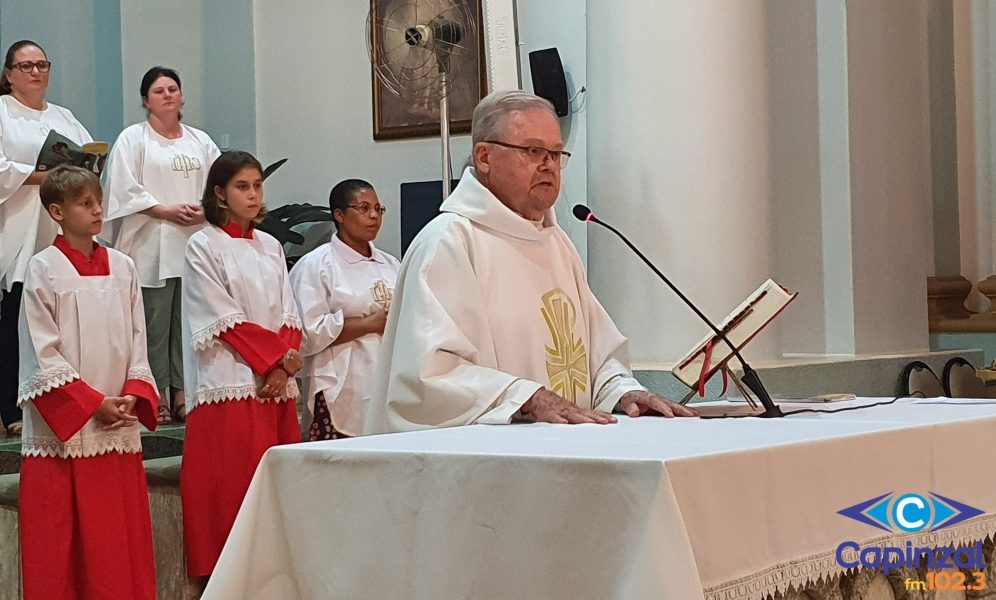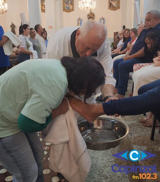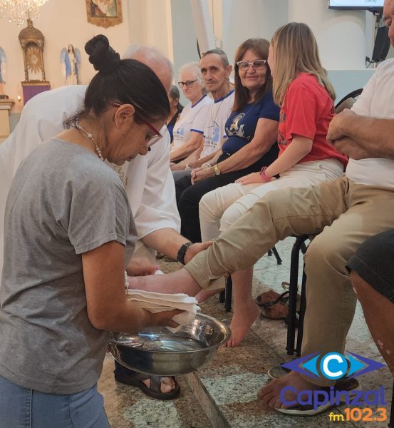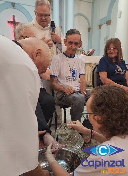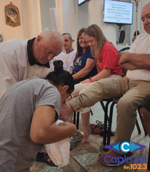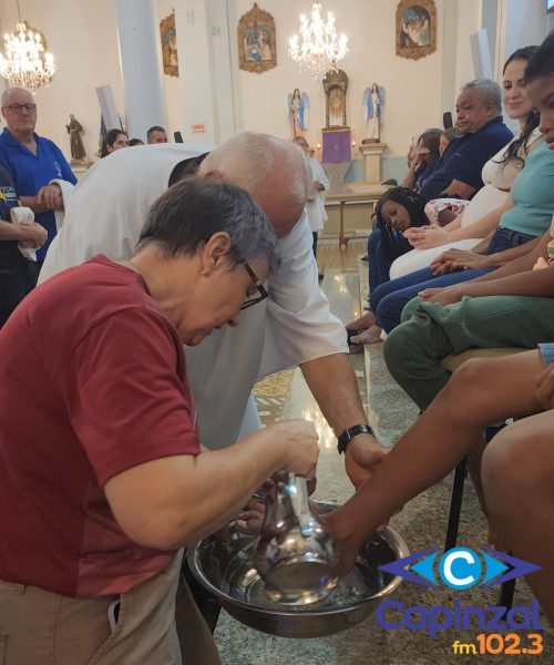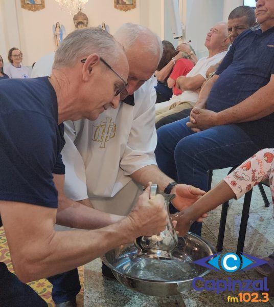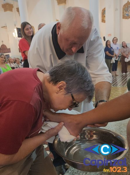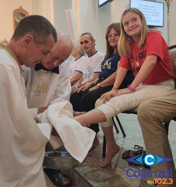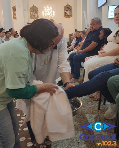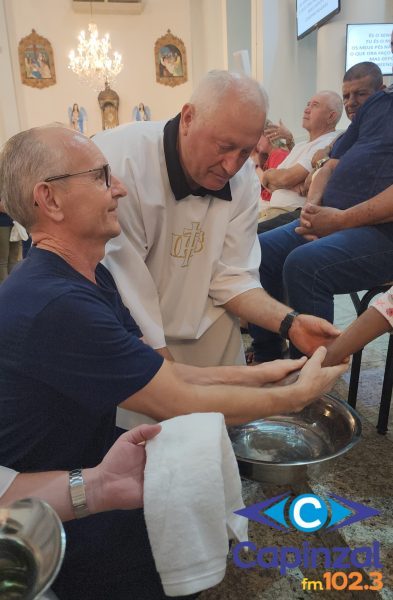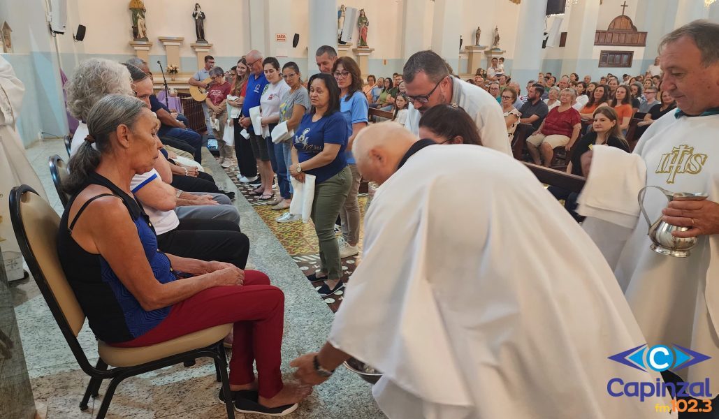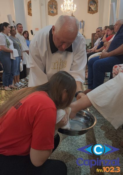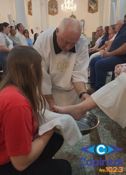 A missa foi presidida pelo pároco da Paróquia São Paulo Apóstolo, Frei Justino Stolf, e contou com o rito do lava-pés, que recorda o gesto de humildade de Jesus Cristo ao lavar os pés de seus discípulos, simbolizando o serviço e o amor ao próximo.