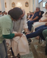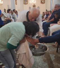 Tríduo Pascal tem início com celebração e rito do lava-pés na igreja matriz São Paulo Apóstolo