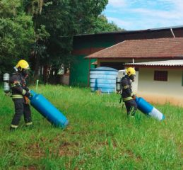 Para eliminar o risco, os bombeiros realizaram o fechamento da válvula de esfera e a desconexão dos cilindros da central de gás. Na sequência, os botijões foram removidos para um local seguro, ventilado, protegido da incidência solar e isolado de possíveis fontes de ignição.