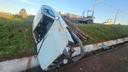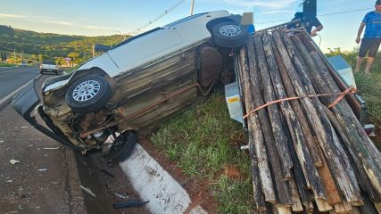 Um Fiat Uno, com placas de Capinzal, acoplado a uma carretinha carregada com madeira, saiu da pista na SC-467, nas proximidades do acesso ao Loteamento Recanto dos Pássaros, em Capinzal. O Corpo de Bombeiros foi acionado por volta das 17h40min desta segunda-feira, 10 de novembro.