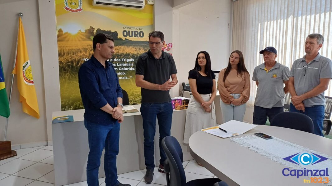 O vice-prefeito Rene Modena (PP) assumiu, na manhã desta terça-feira (6), o comando da Prefeitura de Ouro em razão das férias do prefeito Claudir Duarte (PL). A transmissão de cargo ocorreu no gabinete municipal, com a presença de secretários, diretores e vereadores.