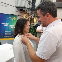 Juliana destacou que sua trajetória e a do marido já eram voltadas ao trabalho voluntário, com envolvimento na comunidade e na Capela do Loteamento São Luiz. "Meu marido já trabalha 24 anos na APAE, que também é mantida por trabalho voluntário, então a gente já abraçou essa causa," explicou. O convite para integrar o Rotary foi recebido com grande honra, pois reflete o espírito do casal de "poder ajudar os outros e fazer parte de um mundo melhor". Sobre o aprendizado inicial, ela comparou a experiência a uma "escola" que os instrui para que saibam sua função dentro do grupo.