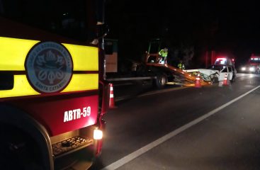 Um acidente de trânsito envolvendo quatro veículos de passeio foi registrado na noite de sábado (21) na BR-116, nas proximidades da ponte sobre o Rio Correntes, em Santa Cecília. A ocorrência mobilizou equipes do Corpo de Bombeiros Militar por volta das 21h23.