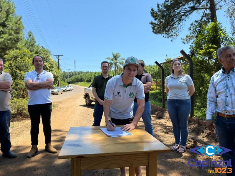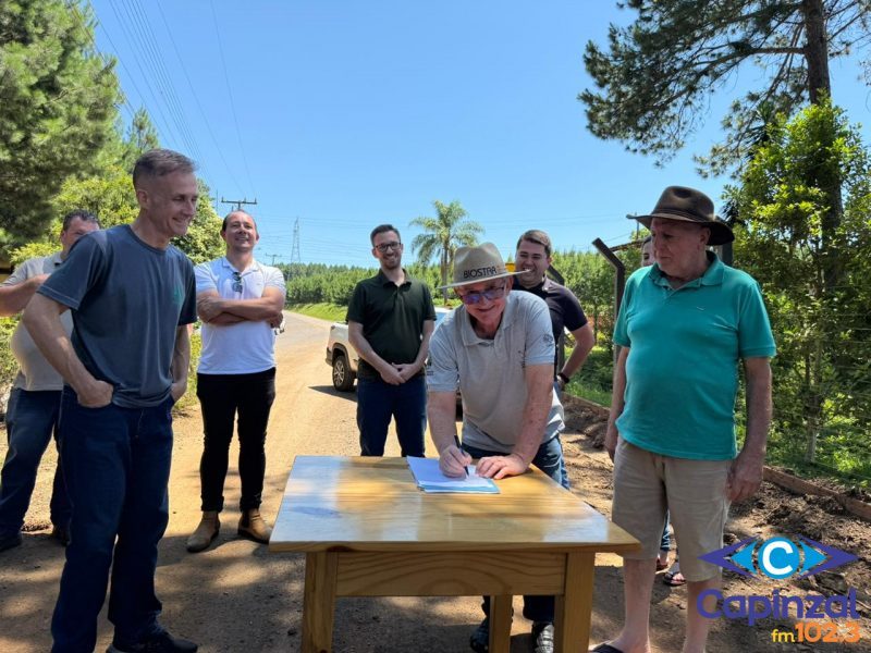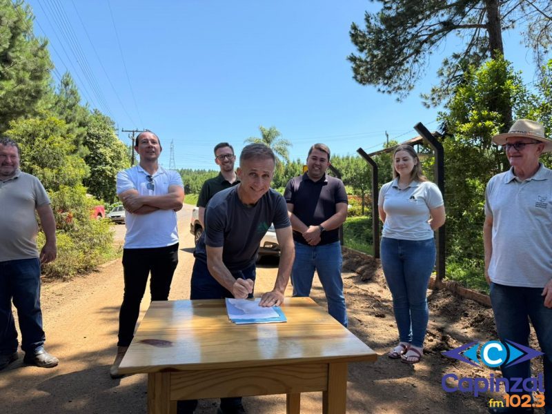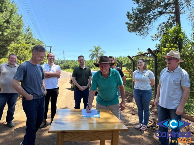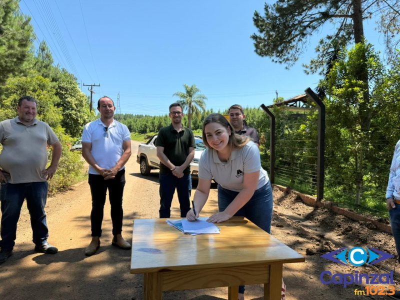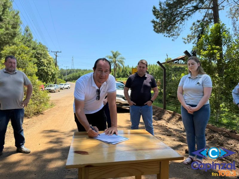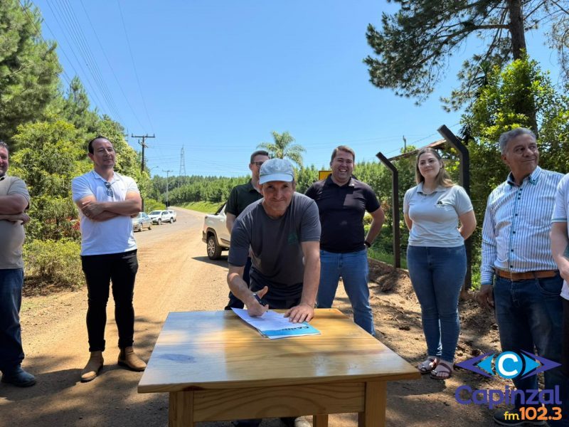 A Administração Municipal de Capinzal realizou, na manhã desta sexta-feira, 5 de dezembro, a assinatura da ordem de serviço que autorizou a pavimentação de 470,66 metros lineares no acesso à comunidade de Barro Preto, no interior do município. O investimento total é de R$ 368.915,15, com parte dos recursos oriunda do Governo do Estado. A obra estava orçada inicialmente em R$ 427.723,76 e, após o processo licitatório, houve uma redução de R$ 58.808,61, equivalente a aproximadamente 13,75%.