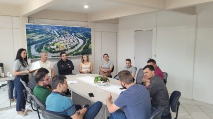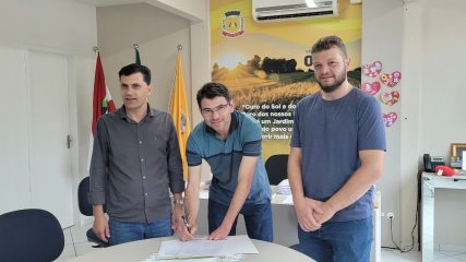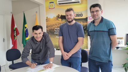 Além do prefeito Claudir Duarte e do representante da empresa, estiveram presentes o vice-prefeito Rene Modena; as secretárias Dayana Colombo (Administração e Fazenda), Edinéia Rech Schlindwein (Educação, Cultura e Desporto) e Adriana Duarte (Indústria, Comércio e Turismo); o engenheiro Brian Bortoli e os vereadores Gian Walkiv (presidente da Câmara), André D’Agostini, Diego Baretta, Roni Rodrigues e Tiago Viganó.
