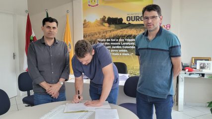Foi assinada na tarde desta terça-feira, dia 28, no gabinete do prefeito Claudir Duarte, a ordem de serviço para a reforma e ampliação do Centro de Eventos Sidnei Paulo Faccin (Caravaggio). O ato contou com a presença de representantes do Executivo, Legislativo e da empresa responsável pela execução da obra.