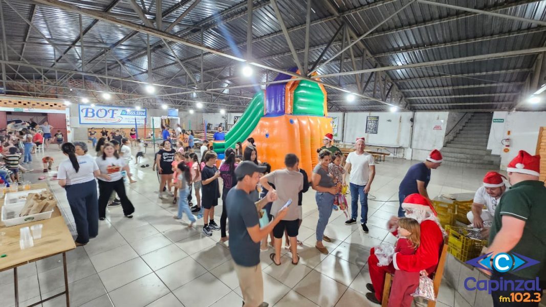 A Prefeitura de Capinzal, por meio da Secretaria de Educação, Cultura e Esportes, com apoio da Secretaria de Desenvolvimento Econômico, Inovação e Turismo, realiza as ações natalinas nos bairros e loteamentos do município. A abertura ocorreu na noite desta segunda-feira, 1º de dezembro, no Bairro São Cristóvão, onde famílias participaram de uma programação especial no Centro Comunitário. A parceria envolveu o Jeep Clube Capim Dourado, a comunidade local, a capela, o Clube de Mães e o Esporte Clube São Cristóvão, garantindo brinquedos infláveis, pipoca, lanches, refrigerante, entrega de presentes e a presença do Papai Noel.