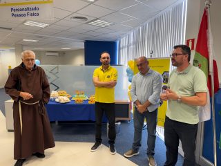 Na manhã desta terça-feira, a agência também recebeu visitas especiais para celebrar a data, entre elas o Frei Ivo Lazzarotto, da Paróquia São Paulo Apóstolo, o presidente da Câmara de Vereadores, Kelvis Borges, e o secretário de Administração, Leandro Jacó Paza, que representou o prefeito Aguinaldo Pedro Paggi, além de funcionários e imprensa.