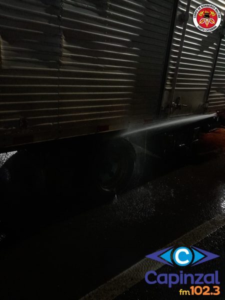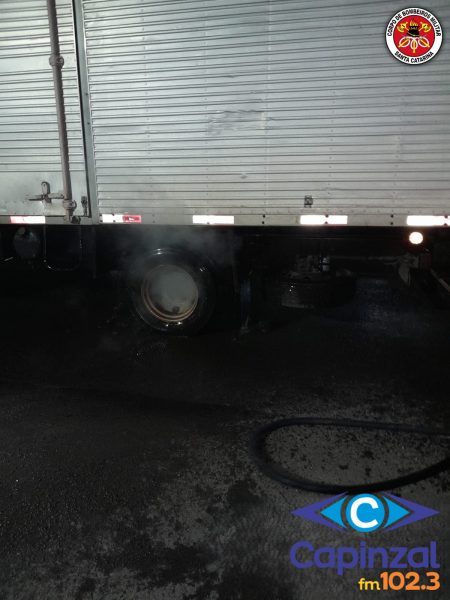 Bombeiros atendem ocorrência de superaquecimento em pneus de caminhão na SC-464