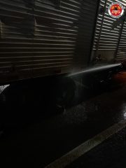 A guarnição realizou o resfriamento das rodas e pneus, utilizando aproximadamente 1.000 litros de água. Após o procedimento e com a temperatura estabilizada, o veículo foi deixado aos cuidados do condutor.