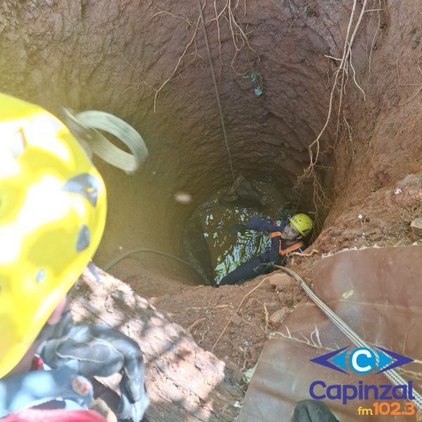Conforme as infrmações repassadas, a Central de Operações do Corpo de Bombeiros Militar (COBOM) acionou a guarnição de Piratuba, que deslocou até o local para atendimento da ocorrência de resgate de animal em poço.