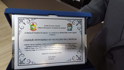 Câmara de Capinzal concede Título de Cidadão Honorário ao empresário Bernhard Josef Gratt em sessão solene
