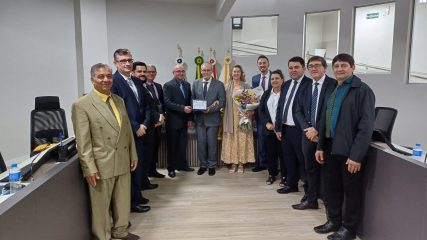 O presidente da Câmara, vereador Kelvis Borges, destacou o simbolismo da homenagem, ressaltando a importância do empresário como inspiração para a comunidade capinzalense, sua atuação no mercado internacional e a humildade com que compartilha conhecimento.