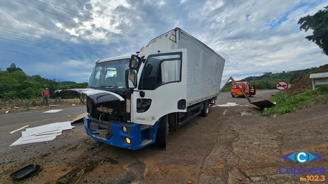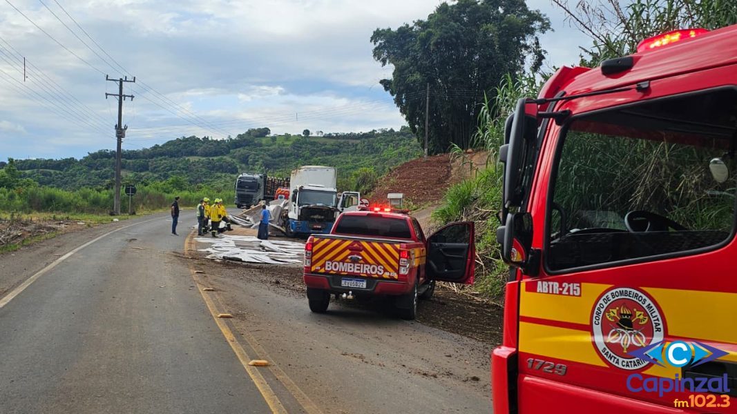 Caminhão carregado de papel sai da pista e colide com barranco no Contorno Viário de Capinzal - Ouça o relato do motorista
