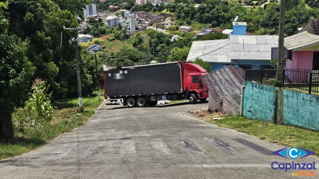 O condutor de um caminhão Ford/Cargo, com placas de Feliz (RS), enfrentou dificuldades ao ser direcionado pelo GPS para uma rua íngreme no Loteamento Fernanda, em Capinzal. A ocorrência foi registrada por volta do meio-dia desta sexta-feira (9).