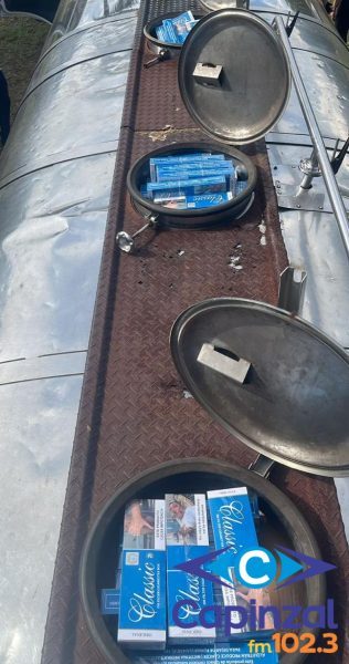 O veículo, um Ford Cargo 1519 emplacado em Osasco (SP) e adaptado com equipamento utilizado para coleta de leite, era conduzido por um homem de 28 anos. Na inspeção, os policiais localizaram a grande quantidade de cigarros escondida no compartimento interno.