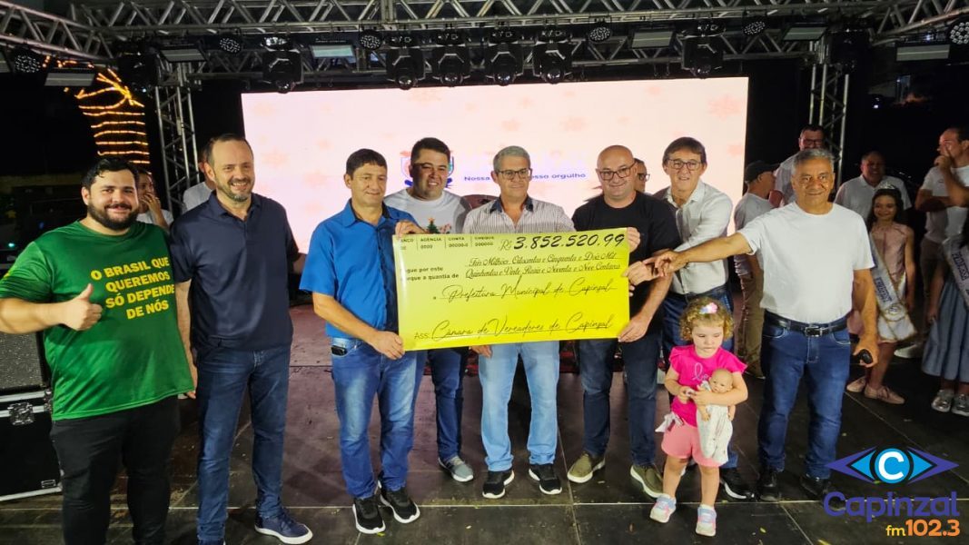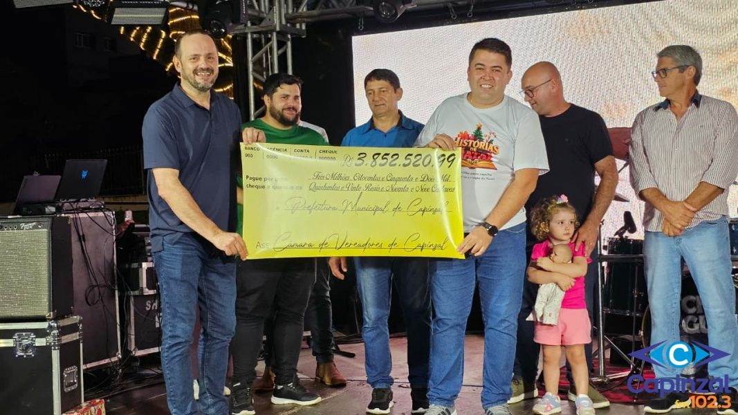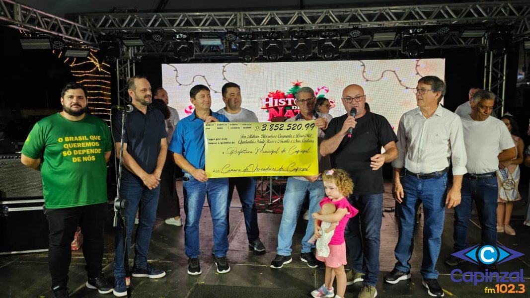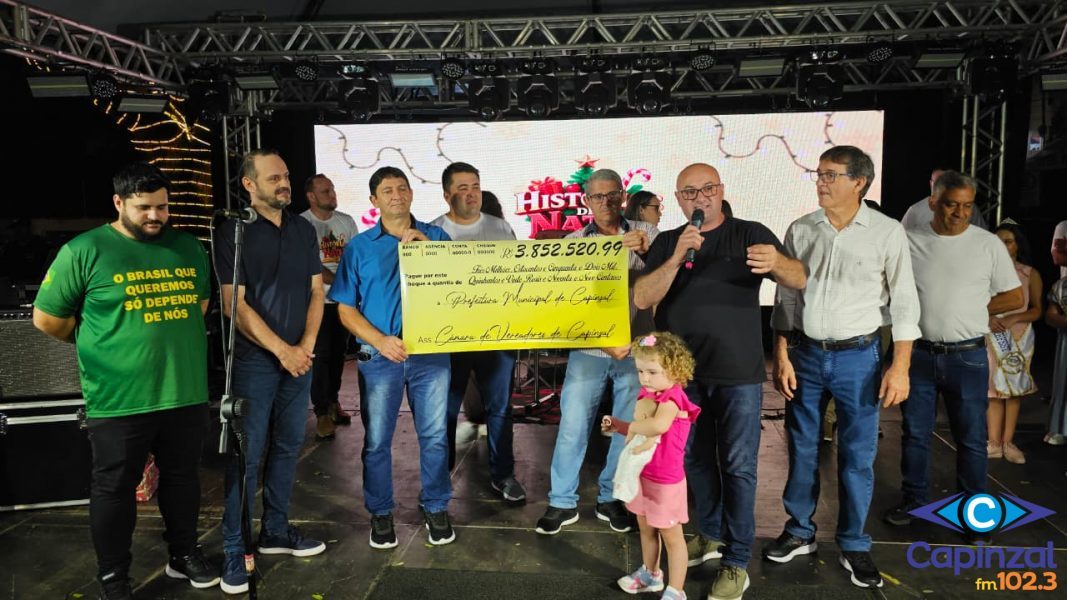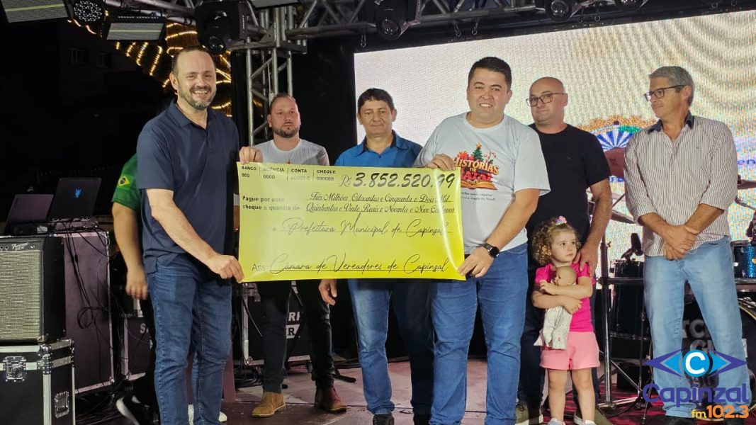Durante a solenidade, o presidente da Câmara de Vereadores, acompanhado pelos demais parlamentares, realizou o ato simbólico de devolução de R$ 3.852.520,99 ao Poder Executivo. Segundo o presidente Kelvis Borges, o valor é resultado da economia feita pelo Legislativo ao longo do ano e representa o maior montante já devolvido na história da Câmara Municipal, conforme o parlamentar.