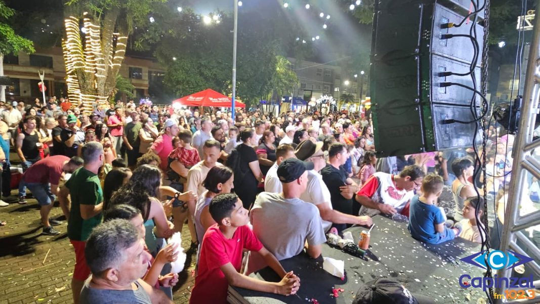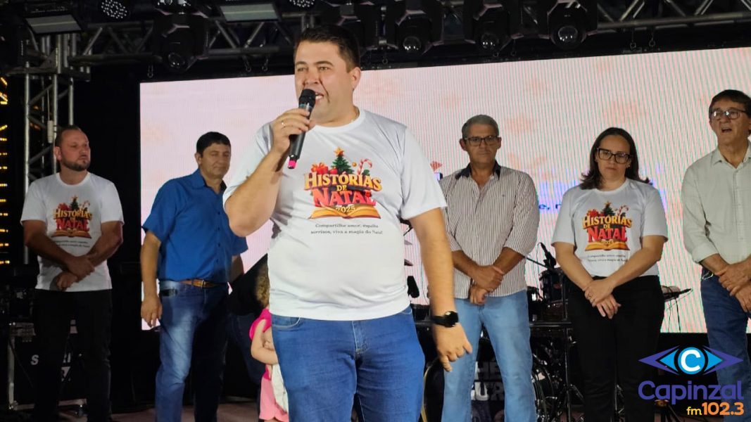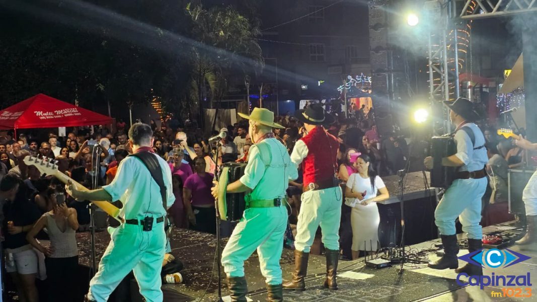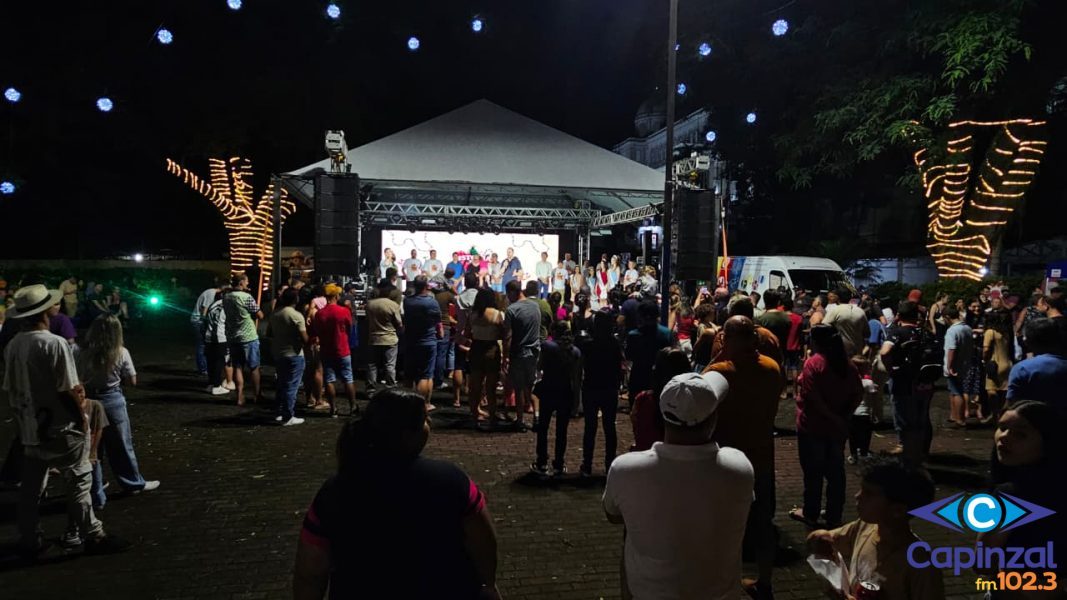 Capinzal encerrou na noite desta terça-feira (23) a programação do Histórias de Natal 2025, em evento realizado na Praça Pedro Lélis da Rocha. A celebração reuniu grande público e contou com a presença do Papai Noel, apresentações do grupo Faro Eventos e, na sequência, show do Grupo Tchê Guri.
