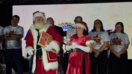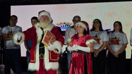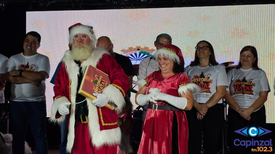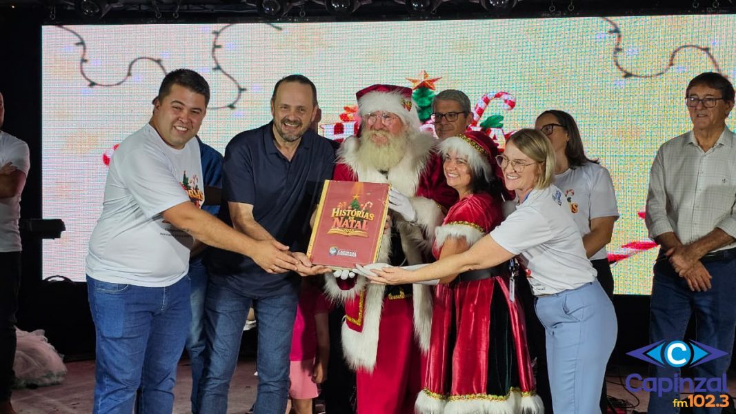 Um dos momentos simbólicos da noite foi a devolução do livro Histórias de Natal, marcando oficialmente o encerramento das atividades natalinas no município.