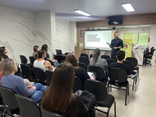 A capacitação foi conduzida pelo psiquiatra Dr. Guilherme Schneider Mendonça, que abordou temas fundamentais relacionados ao manejo clínico em saúde mental, incluindo os principais transtornos psiquiátricos, protocolos de tratamento, uso de medicações e abordagens terapêuticas integradas.