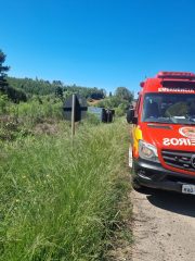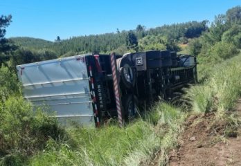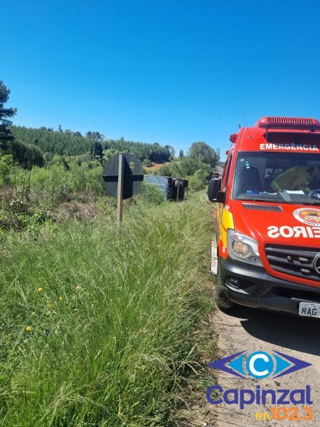 Nesta terça-feira (14), o Corpo de Bombeiros Militar atendeu o tombamento de uma carreta na BR-153, próximo à ponte do Rio do Mato, no interior de Água Doce.