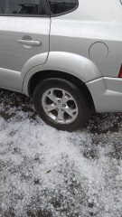 Após o temporal, Nilva afirmou que os expositores foram para o lado externo e encontraram cerca de 20 centímetros de gelo acumulado no chão. O veículo utilizado pelo casal ficou destruído, com o para-brisa quebrado e a lataria danificada. O trailer também sofreu danos significativos, com o teto totalmente perfurado.