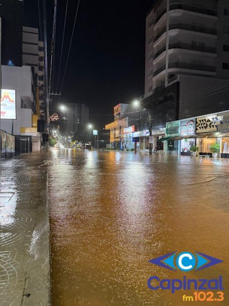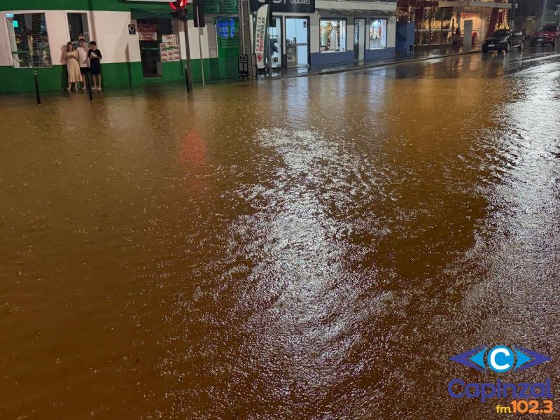 Concórdia registrou 109mm de chuva em 24 horas, volume expressivo que causou alagamentos e diversos transtornos na área central do município na noite desta quarta-feira (31). O grande acumulado em um curto intervalo de tempo deixou vias tomadas pela água, dificultando o tráfego de veículos e a circulação de pedestres.