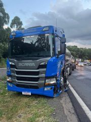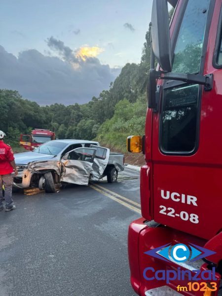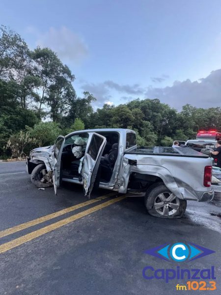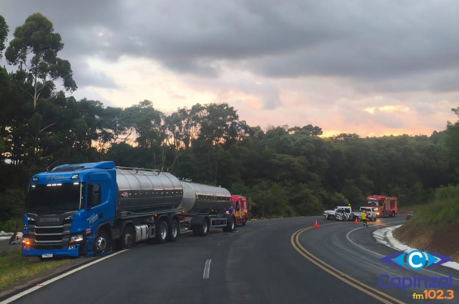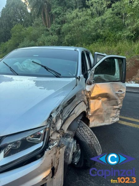 Uma colisão lateral entre um carreta leiteira e uma caminhonete com placas da Argentina foi registrada no início da noite deste sábado (31), na BR-282, em Vargem Bonita, no Meio-Oeste de Santa Catarina. Apesar do impacto, ninguém ficou ferido.