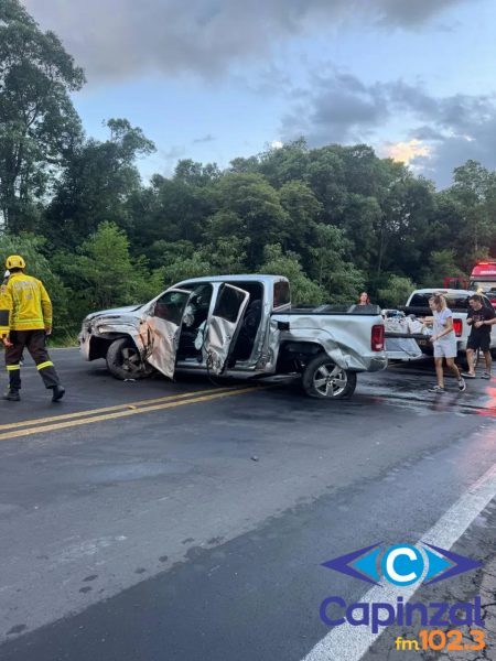 Colisão entre carreta e caminhonete argentina na BR-282
