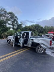 Na VW Amarok, de placa argentina, estavam quatro ocupantes. O condutor, um homem de 67 anos, relatou não ter sofrido ferimentos e também recusou atendimento. A esposa do motorista, uma criança de 3 anos e outra mulher de 40 anos não sofreram ferimentos.