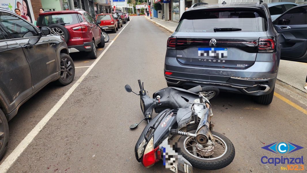 Uma colisão envolvendo uma motoneta Honda Biz e um T-Cross foi registrada na manhã desta quinta-feira na rua Dona Linda Santos, no centro de Capinzal. Ambos os veículos com placas de Capinzal.
