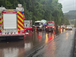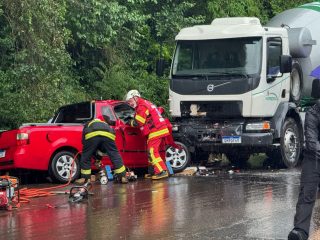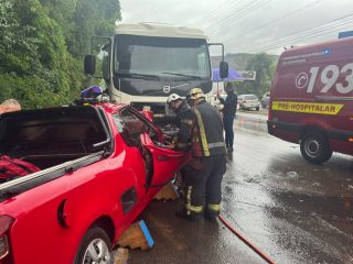 Equipes dos Bombeiros Voluntários, do SAMU e da Polícia Militar Rodoviária (PMRv) atenderam a ocorrência. Motorista do utilitário ficou preso nas ferragens e foi retirado do veículo pela equipe do Corpo de Bombeiros, que utilizaram ferramentas hidráulicas para ter acesso a vítima.