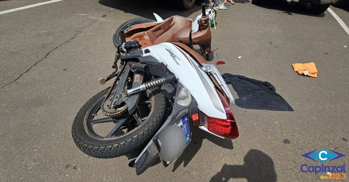 Duas pessoas, de 17 e 19 anos, foram socorridas pelo Corpo de Bombeiros no início da tarde desta segunda-feira (27), por volta das 13h39, após uma colisão entre um carro e uma motoneta na Avenida XV de Novembro, no centro de Capinzal.