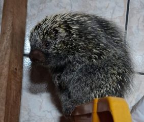 Com cuidado, a família conseguiu retirá-lo com segurança e, em seguida, realizou a soltura em uma área de vegetação próxima, devolvendo o porco-espinho ao seu habitat natural.