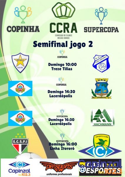 Serão conhecidos neste domingo, dia 23, os finalistas da 21ª Supercopa e da 17ª Copinha de Futebol – Taça Capinzal FM 45 anos, competições promovidas pela Comissão de Clubes da Região da AMMOC.