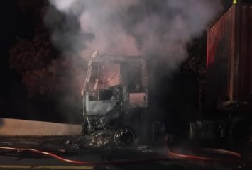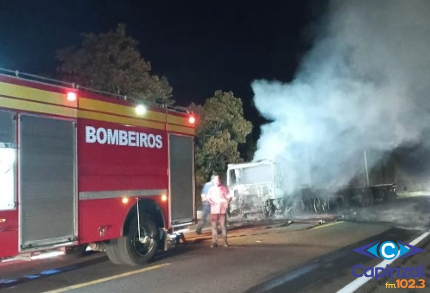 No local, os socorristas constataram que a carreta era conduzida por um homem de 46 anos, e estava completamente tomada pelas chamas. Ninguém ficou ferido.