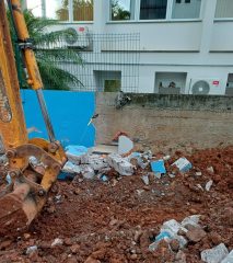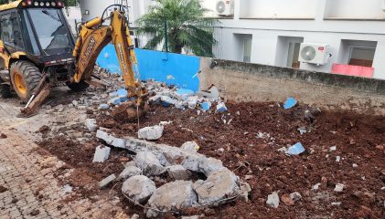 No começo de janeiro, uma empresa especializada foi enviada ao município para realizar a sondagem do solo e avaliar se seria possível retirar o muro sem oferecer riscos à estrutura do prédio. Após a análise, foi constatado que o local apresentava condições adequadas para a remoção.